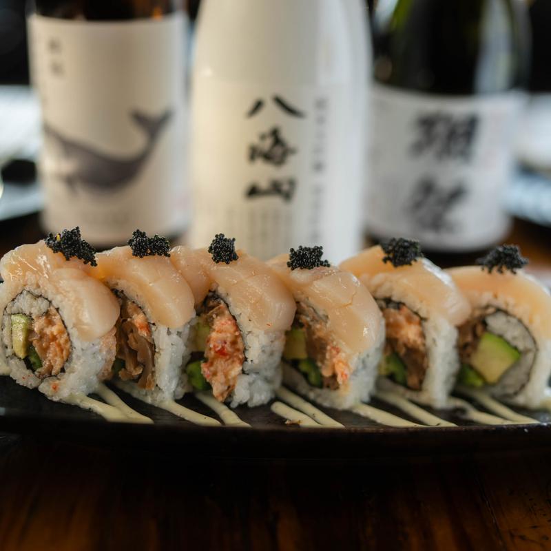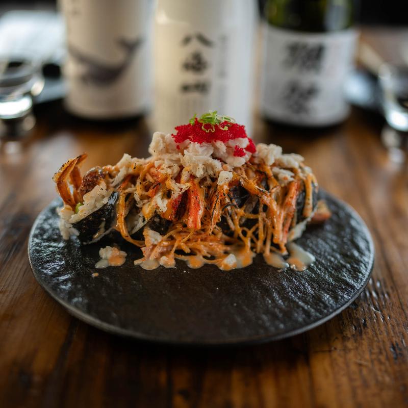 Shrimp l Crab Meat l Cucumber l Topped with Salmon Toro l Avocado l Scallion l Salmon Roe l House made Spicy Yuzu