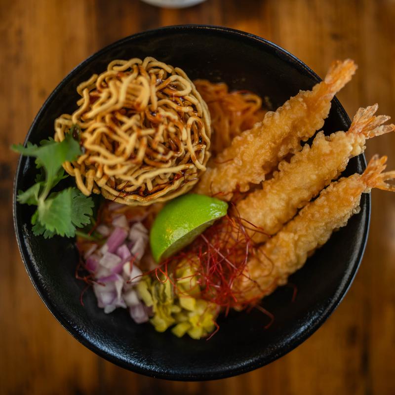 Choice of: Fried Chicken, Shrimp Tempura (3pcs) +$2.00, or Soft-Shell Crab +$4.00